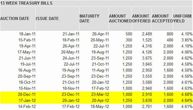 This leaves 2.74 billion over 3 months to survive with. Even if you believe the 1% deficit for 2012 forecast (complete nonsense on page 99) Greece is in arrears 1.25 billion per month. This consumes entirely the remaining distributed money from the EU & IMF. Plus there is 5.2 billion Euros of Treasury bills due in April and May.
